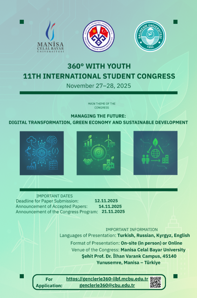 Manisa Celal Bayar University, Kyrgyz-Turkish Manas University, and Balıkesir University are jointly organizing the 11th International Student Congress ‘360° with Youth’ this year, bringing together young researchers. Prioritizing interdisciplinary production and international collaboration, the congress aims to present students’ original studies to a wider audience in a hybrid format.